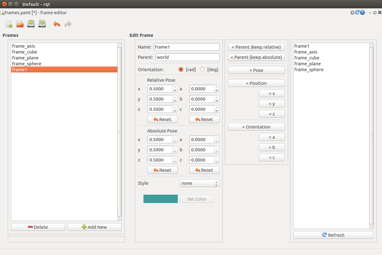 | Description | An rqt plugin for creating, manipulating and managing tf frames. |